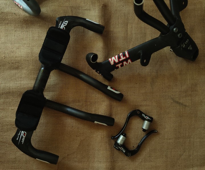 ITM Dual Aero tt crono handlebars with integrated 1" (25.4mm) ahead stem. 36.5cm center to center. With holes for internal cable routing. 170 euros
