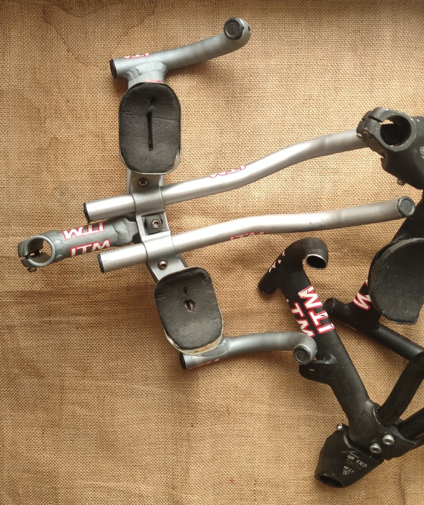 ITM Dual CX ah tt crono handlebars with integrated 1 1/8" (28.6mm) ahead stem. 37cm center to center. With holes for internal cable routing. Both ends and extensions shortened and cut. 140 euros