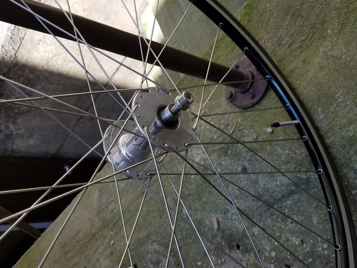Rear wheel- Phil wood hub and polished campagnolo rim (32h)