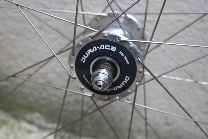 Dura Ace 7600 NJS (36 hole) to Velocity Deep V rims. Never ran brakes, great shape set $375
