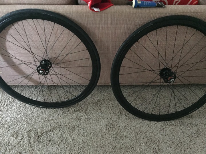 h plus son tb14's laced to all city new sheriffs everything black. will include 17t and 15t cogs, 2 lockings, rim tape, and a set of lightly used vittoria randonneur tires.